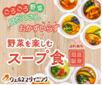野菜がごろごろ入った具だくさんのスープ食を冷凍して、ご自宅まで宅配してくれます。