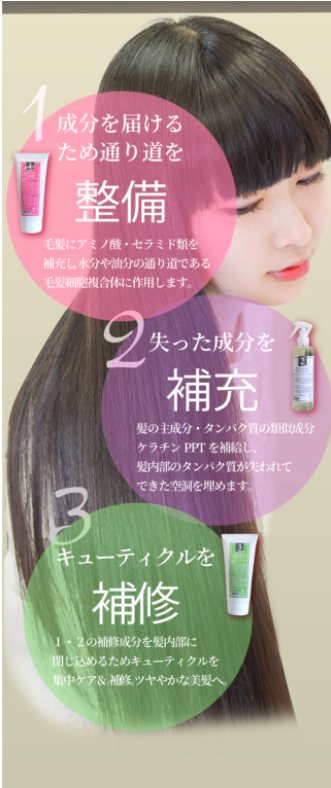 BIMERAトリートメントは3ステップで丁寧にダメージケアをすることができ、サロン仕上がりの美髪に♪