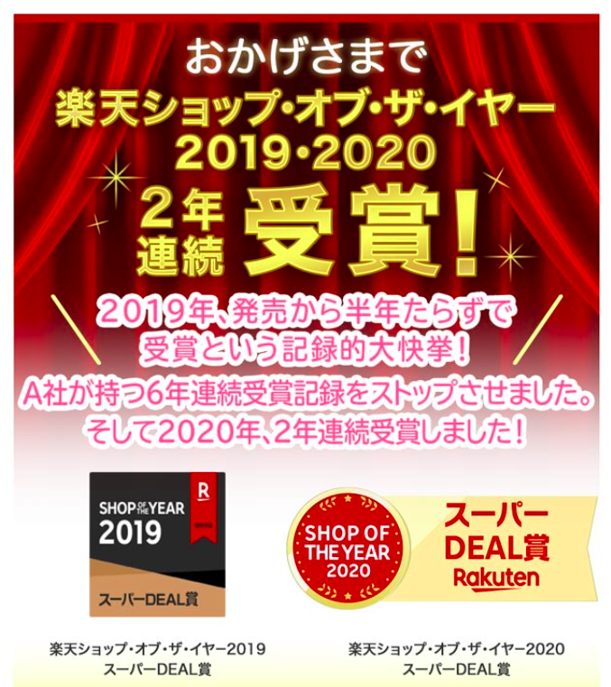2019年・2020年 楽天ショップ・オブ・ザ・イヤー 2年連続受賞◎