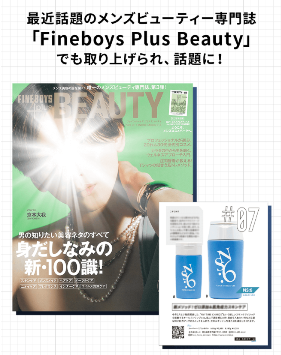 メンズビューティー専門誌「Fineboys Plus Beauty」でも、取り上げられ、話題に!