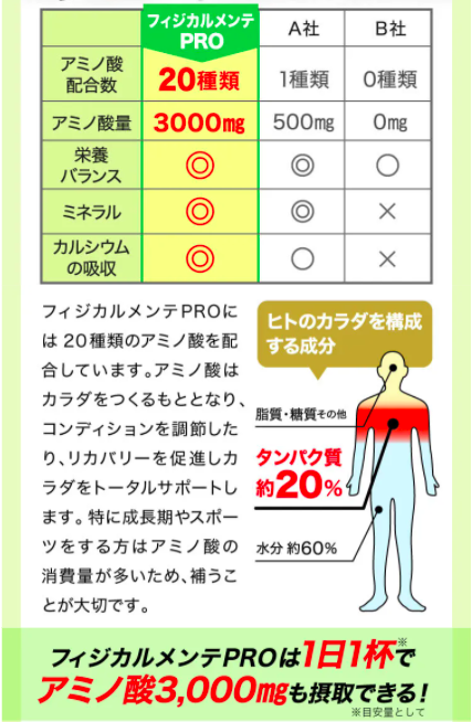 アップグレードPROはアルギニンの配合量が業界トップクラス 3,000mg!